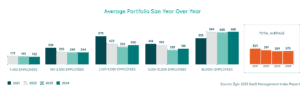 Our data shows that between 2021-2023, the total average number of applications per company steadily declined. However, as AI began to take hold in 2024, we saw portfolios increase in size to an average of 275 applications.