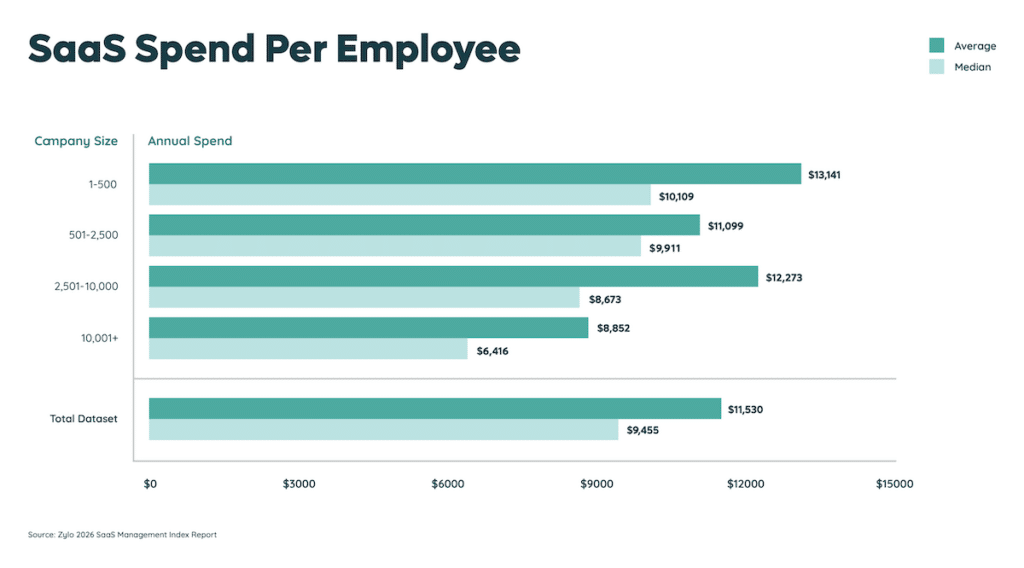 Governance provides the visibility needed to identify redundant apps, unused licenses, and unapproved purchases. With SaaS costs rising in 2026, financial efficiency depends on managing spend in real time and aligning budgets with actual usage. The median SaaS spend per employee is now $9,455.