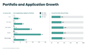 SaaS portfolios have become bloated with apps after years of ungovered purchasing. In 2024, the average company held 275 applications in its portfolio, based on the findings in the 2025 SaaS Management Index. While this figure has come down in recent years, it’s the far less than the over 300 apps we saw in 2021.